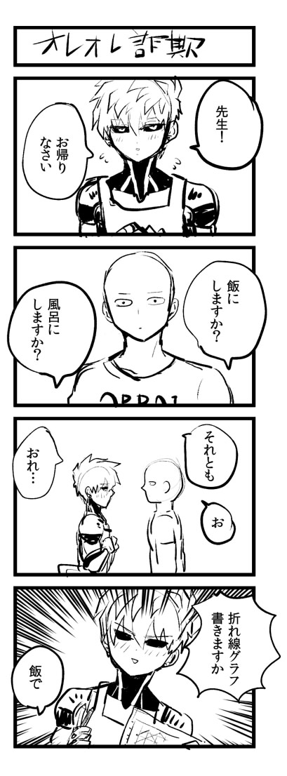 すごくどうでもいい個人的な解釈なんですが、ジェノスは敬語がヘタだと思っています。いや、頭はいいはずなのでちゃんと言葉は知っていると思うのですが、普段とにかく殆ど敬語を使わなかったのでそんな咄嗟に出てくる感じではないんじゃないかな~という妄想です。なのでなるべく尊敬語というかそういうものを使わないようにしています…そのほうが一生懸命感があってかわいいかなと思って…