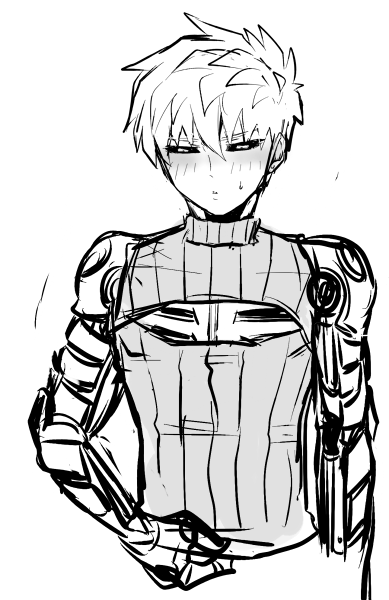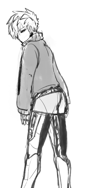 単体 2015/01/27 なまあし 機械のすらりとした脚っていいですねジェノスの腕は基本ノースリ必至みたいな感じかと思ってたんですけど、むらた先生はときどき長袖とか描いたりするのでぶかっとした服とかなら収められるのかな…と思います。そのぶん脚を強調できていいですね。ニーソもいいですがハイソックスもいいですね。とてもいいです。