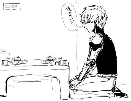 単体 2013/09/20 ぼっちめし 先生と弟子のいっしょにごはん事情すごく知りたいです先生と無免が和やかにおでんを食べている一方で ジェノスは何してたんだろうって気になってしまって… 家でひとり待ちぼうけてたらどうしようって… 「今日は外で食べるから夕飯いらないよ~」っていうのも ふつうならメールとかで一言あればいいんですけど 先生は携帯もってなさそうだしわざわざ電話までしない気もするし でもたぶん普段はいっしょにご飯を食べてそうなので どうなってるんだろう…と思いました。 お父さんが「昔は夕飯の前に屋台に寄っておでん食ってから帰ってた」って 云ってたので私はそのセンだと睨んでます。 あっだからお酒呑まなかったの先生??? このあとおうち帰って弟子と夕飯食べるから??? なるほど~~!スッキリ! それか以前弟子に全否定されたから先生は外でこそこそ 海藻を食べてるのでは…なんて… そういえば無免はどうやって自転車乗ってきたんだろう? 松葉杖つきながら手押しで歩くって想像しただけで 体中がバキバキになりそうです。