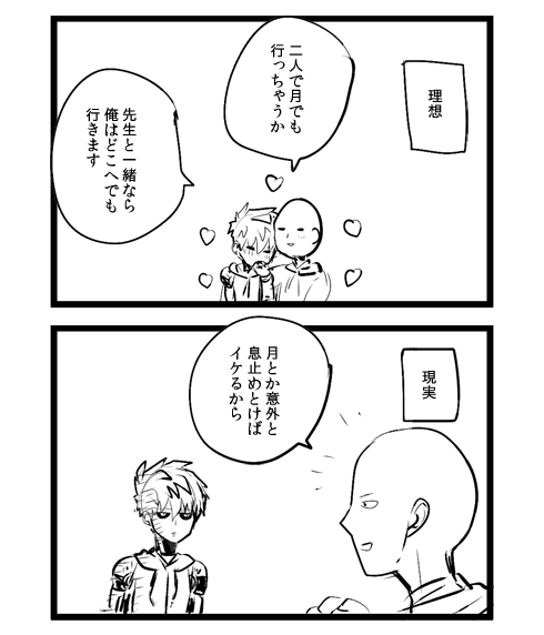 漫画 2014/12/09 7かん 7巻のネタバレなど含みます ですよねいや、多分現実のジェノスちゃんもこの後「先生さすがです」になるんならどこへでもついて行きそうなものですが…あの表情から「先生さすがです」に至るまでにジェノスちゃんの脳内で何があったのかとても知りたいです。お目目がライトつくのもかわいかったです。今回のコミクスは先生が随所でかっこよくて、おまけもたくさんあってうれしかったですね!何よりジェノスのエプロン姿をついに拝めたので私はもう何も人生に悔いはない…Goodbye…ってなりました。ほぼイきかけました。想像以上にオカンエプロンで胸にGとか入っちゃっててうわあああああかわいいいいいいいいいいいいいって転げまわりました。やっぱり毎日先生にご飯よそってあげてるんですね!!!!!!!ありがとうございます!!!!!!!!!ボロス戦は洋画SF並の迫力だったし、アマイさんはイケメンの輝きがすごかったし、金属バットちゃんシスコンかわいかったし、タンクトップはかわいそかわいい感じで今回もあまねく満足でした。裏表紙の浮いてるジェノスちゃん妖精かと思いました。まじめにティンカーベル。そういえばあれから調べたのですが今回は店舗別ではなく出版社側からの特典なのであったりなかったりもあるみたいですね…アニメイトも基本はポスカ配る感じだったみたいなので残念です。せめてないならないで告知して…と思いましたがまぁ難しいんでしょうねえ~となじゃんも変わらずガロウが生々しいからだつきなのでとても見つめてしまうのですが、その先のジェノスVSソニックがとっても楽しみですね~~。先生に翻弄されるフブキちゃんも楽しみです。