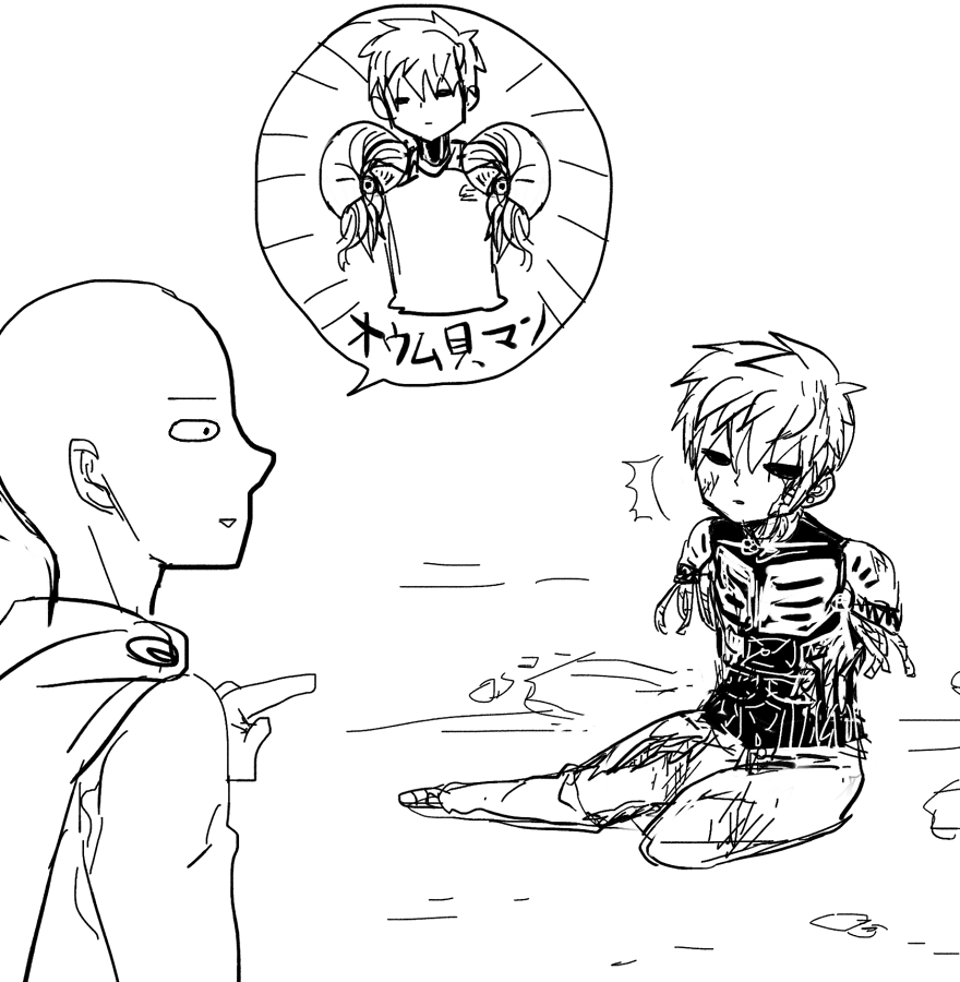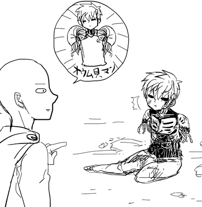 師弟 2013/09/15 まるくなる 想像以上にかわいくなりませんでした ファミマのミクコラボコーナーにぬいぐるみが置いてあって、 それがめちゃくちゃかわいくてほしい~って思ってるんですけど コンビニで買うのなんか恥ずかしいのでまだ悩んでます。 とにかく昔から長い漫画を描くのが苦手で、描いては消し 間の展開が思い付かず長考し、でそのうちに脳内鮮度がさがってしまい デッドエンドを繰り返しているのですが、ネタだけはあるので なんとか昇華させたいです。といいながら連休も半分終ってしまった… 以下反転で配信ネタバレなど 突然なんかのさなぎが流れたので笑ってしまいました。 パラシュート郵便ってもしかしてジェノスちゃん クセーノ博士から仕送りしてもらってるの? オイルとか整備道具とかお野菜とか入ってるの? かわいすぎんよ~とかってひとりでうへうへしていたら どうやら先生への苦情のお手紙がいっぱいで またお弟子は切ない顔していてつらかったです。 でもその悲しそうなお顔がたまらんでな…って 結局うへうへしていました。 どうやらとなジャンで普通に掲載されるようなので 来週が楽しみですね!